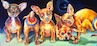 The following paintings are from the "Pitbulls Are After My Chiwawas" series depicting the gerneral theme of Good over Evil, Arrogance over Truth, and Money over the Creativity of Transformative Art.